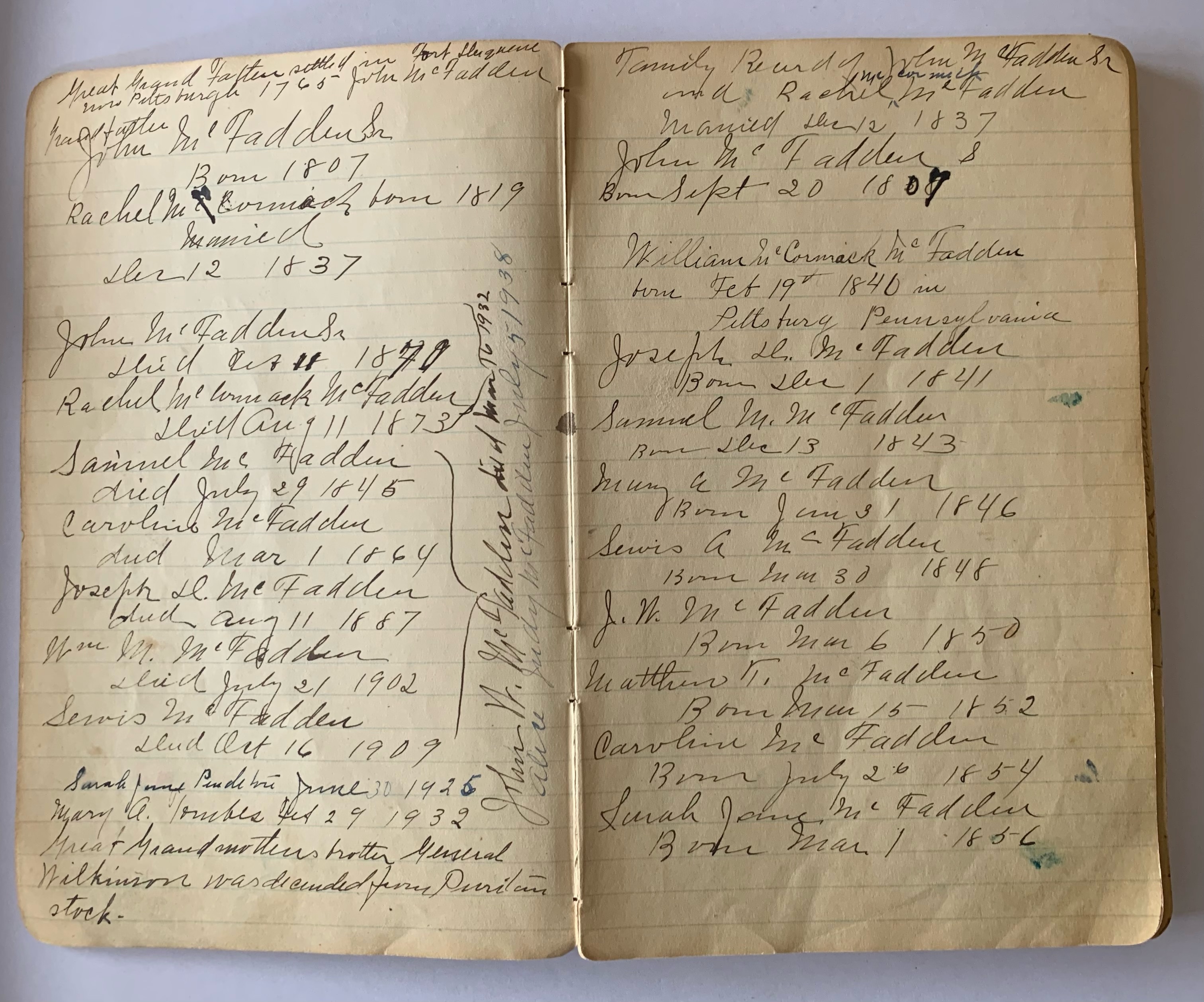 The McCormack family, most often spelled McCormick. Rachel married John McFadden, Carrie’s grandfather.