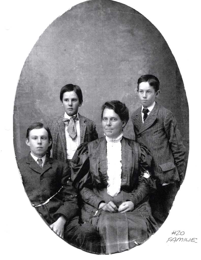 Carrie Earl McFadden Ford with her three sons. (Sons L to R) Herbert Andrew born 27 June 1895, Alvin Leon born 9 Sept 1890, and Maurice Earl (my grandfather) born 14 Jan 1893. Carrie’s Husband Herbert Alvin Ford (pictured in the banner at the top of this page) died 6 June 1895 from Tuberculosis, when she was still pregnant with Herbert Andrew. Becoming a widow at the age of 27, Carrie did not shrink into passive widowhood. “She quickly took control of their ranch and extensive land holdings, establishing herself as a powerful business figure in her own right. during this era, she was the only woman running a ranch in the area.”